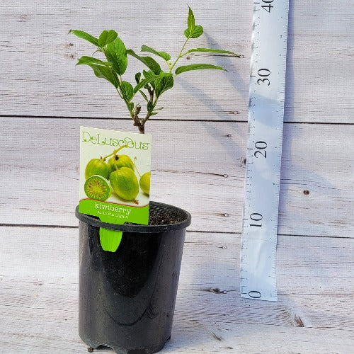 Also known as hardy kiwifruit. Closely related to the Gooseberry and similar in appearance, the flesh of the kiwiberry looks much like a regular kiwifruit with small black seeds and an emerald green colour. Fruit size is much smaller and hang in bunches. Self-pollinating. The fruit are delicious, very sweet with a hint of tart, and taste like kiwi fruit but without the rough hairy outer skin. You can eat the entire fruit fresh from the vine - or pop it in a smoothie, chop it into a fruit salad or include it on a cheese and fruit platter. It’s also ideal to dehydrate and eat as a dried fruit or to use in preserves.