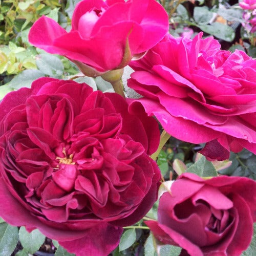 A deep crimson pink coloured bloom with a light-medium fruity scent. It forms an attractive compact shrub with bushy growth.
