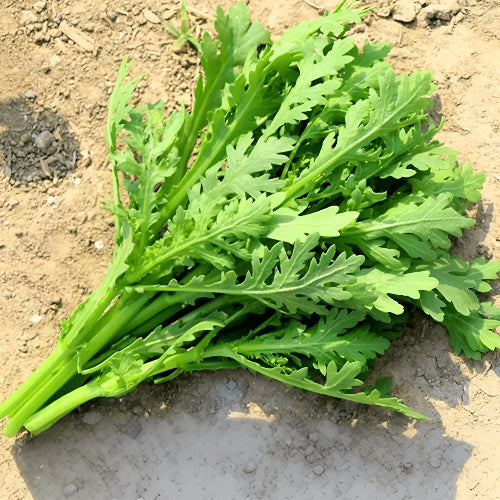 An aromatic leafy, edible chrysanthemum grown for its distinctive flavour. Harvest young, tender leaves for use in soups, hotpots, and stir fries. Prefers cooler seasons. Pinch out the tips to encourage bushier growth and regular harvesting.